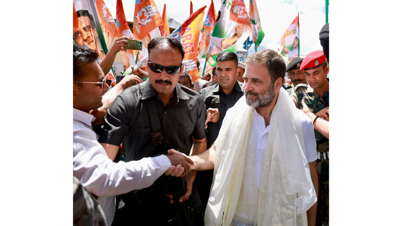 Congress leader Rahul Gandhi receives warm welcome at Leh Airport as he arrives on a two-day visit to Ladakh on Thursday.(UNI)