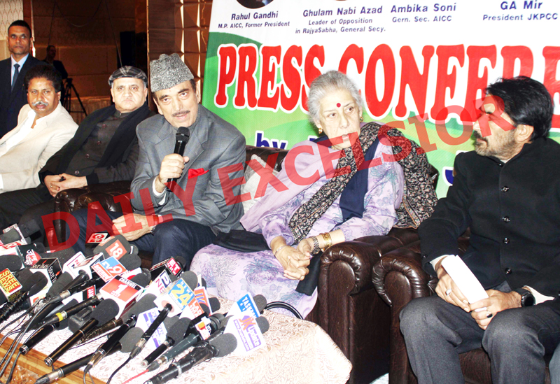 Congress leaders Ghulam Nabi Azad and Ambika Soni addressing press conference in Jammu on Friday. -Excelsior/Rakesh By Daily Excelsior - January 18, 2020 Share FacebookTwitterWhatsAppPinterestLinkedinCopy URLTelegramEmailTumblrReddItPrintKoo Congress leaders Ghulam Nabi Azad and Ambika Soni addressing press conference in Jammu on Friday. -Excelsior/Rakesh Congress leaders Ghulam Nabi Azad and Ambika Soni addressing press conference in Jammu on Friday. -Excelsior/Rakesh Follow our WhatsApp channel