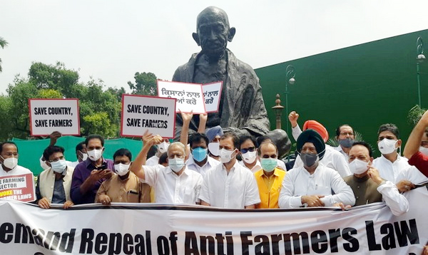 The protest was staged by several MPs of the Congress’ Punjab unit. “Save country, save farmers,” read the placards that were raised.
