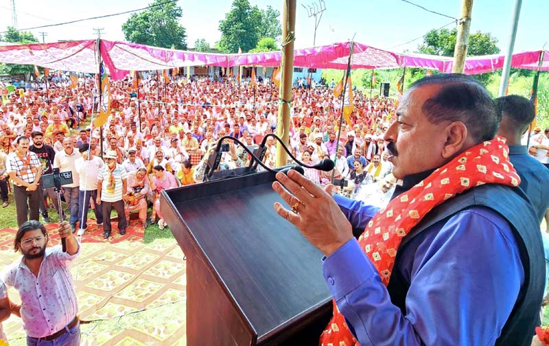 HIRANAGAR, Sept 6: Union Minister Dr. Jitendra Singh said here today that at a time when Prime Minister Narendra Modi has given women the highest priority in every sphere of life and by abrogating Article 370 and 35A he ensured that the daughters of Jammu & Kashmir also be entitled to claim the land and property share of their parents which they were deprived of for almost seven decades under the garb of Article 370, it is unfortunate that Congress and National Conference (NC) intend snatching legitimate rights of the daughters of Jammu & Kashmir by denying them parental property rights through revival of Article 370 and 35A, according to which any daughter choosing to marry an individual who is not a citizen or State Subject of Jammu & Kashmir would be denied claim to the land and property rights of her parents.