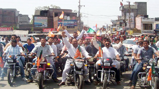 A massive motorcycle rally was taken out from the various areas of the City and culminated at Maharaja Hari Singh Chowk, where a youth rally was organized by the local unit of BJYM. They first paid tribute to Maharaj Hari Singh, the former ruler of the state and later felicitated its State President Ravinder Raina by presenting a Sword to him.