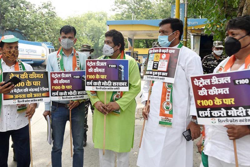 Party leaders said protests are being held at petrol pumps across the county by local units in compliance with COVID-19 protocols.