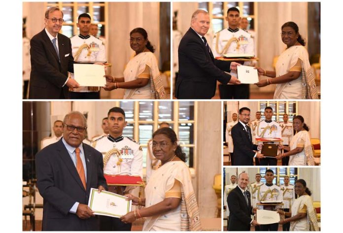 NEW DELHI, Sep 6: President Droupadi Murmu accepted the credentials from the High Commissioners/Ambassadors of Solomon Islands, Nauru, Italy, Iceland and Israel at a ceremony at Rashtrapati Bhavan today.