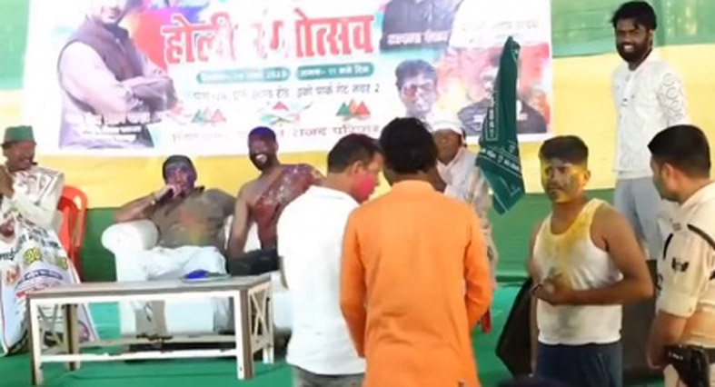 One of the videos of his revelry that has gone viral on social media show the Hasanpur MLA regally seated on a sofa, placed on a make-shift stage, holding a mike.