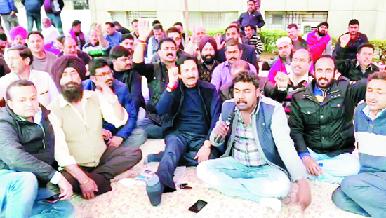 The protesters said that the Finance Department has imposed the Pay and Accounts Office (PAO) system untimely to deny the genuine payments of work done in all the departments of Jammu Province.
