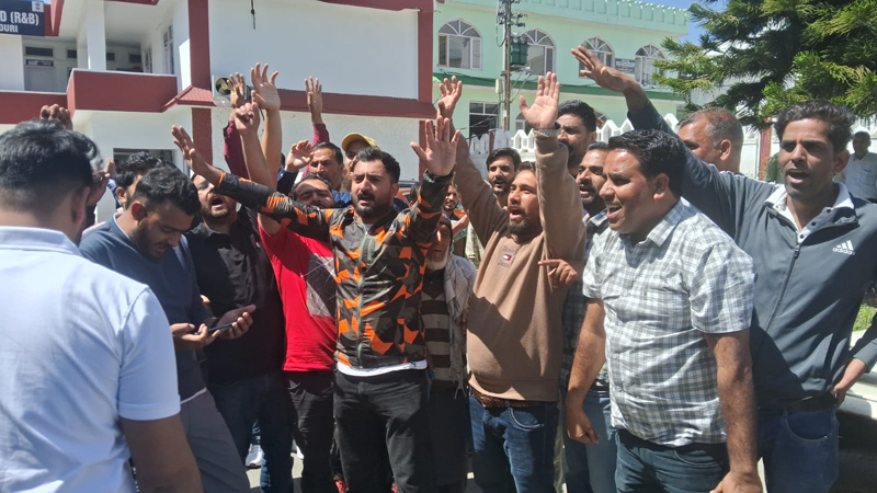 Contractors Shafqat Wani, Raja Magare, Sanjay Kumar, Arif Ahmed and Sajid Iqbal who were among the protesters said that they have got the development works done in Rajouri by taking loan. It is alleged that the bills are pending in the concerned AE and JE offices and have not been paid yet. Many times Association members have requested the officials to pay the bills but official do not bother. They warned if the bills were not cleared soon, they would take their family members along with them and stage a violent protest shortly.