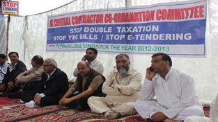 Contractors sitting on hunger strike under the banner of JKCCC at TRC Ground in Srinagar. By Daily Excelsior - June 16, 2013 Share FacebookTwitterWhatsAppPinterestLinkedinCopy URLTelegramEmailTumblrReddItPrintKoo Contractors sitting on hunger strike under the banner of JKCCC at TRC Ground in Srinagar. Follow our WhatsApp channel