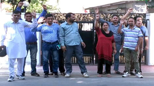 As the Deputy CM was not present at his residence during the protest demonstration, the agitating Contractual Lecturers announced to gherao the minister tomorrow and then moved towards the venue of chain hunger strike at Exhibition Ground.