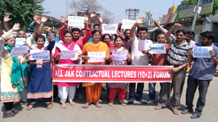 Contractual Lecturers protesting for their regularization on Wednesday.