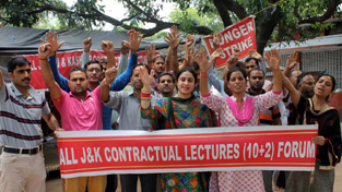 Contractual Lecturers protesting on 144th day of their chain hunger strike on Friday. -Excelsior/Rakesh By Daily Excelsior - July 8, 2017 Share FacebookTwitterWhatsAppPinterestLinkedinCopy URLTelegramEmailTumblrReddItPrintKoo Contractual Lecturers protesting on 144th day of their chain hunger strike on Friday. -Excelsior/Rakesh Contractual Lecturers protesting on 144th day of their chain hunger strike on Friday. -Excelsior/Rakesh Follow our WhatsApp channel
