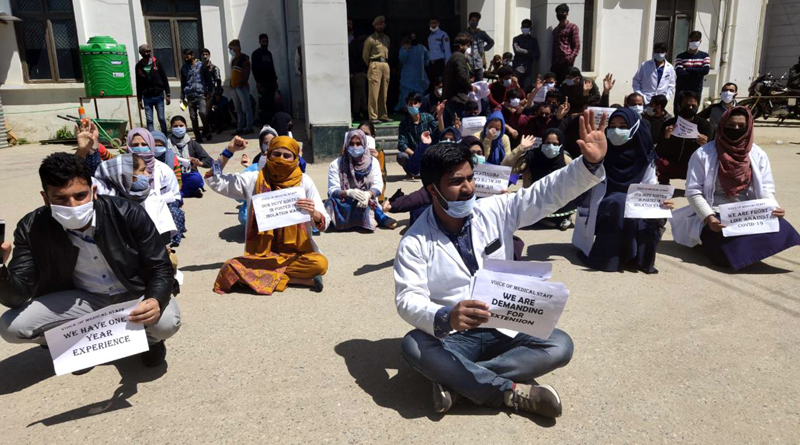 “On the one hand, the Government is appointing the retired doctors to make the health services better in the Union Territory and on the other hand is terminating the contractual paramedical workers. The decision of termination will effect the health services in the Union Territory of Jammu and Kashmir especially in far flung areas”, the protestors said.