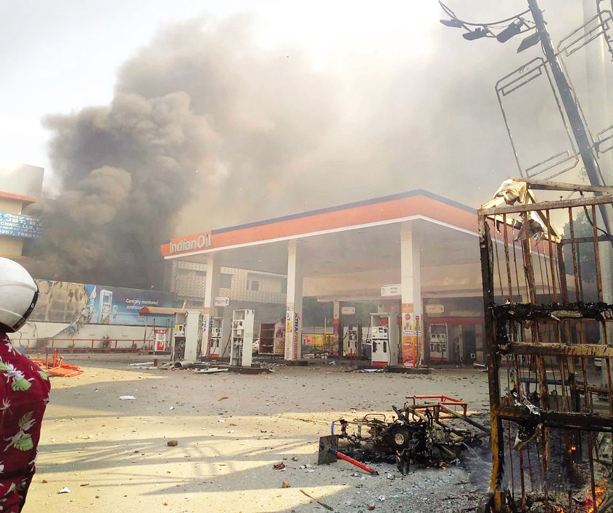 NEW DELHI, Feb 24: A head constable was among four people killed and at least 50 others, including several paramilitary and Delhi Police personnel, were injured as violence spiralled over the amended citizenship law in northeast Delhi, turning it into a battlefield today with frenzied protesters torching houses, shops, vehicles and a petrol pump, and hurling stones.