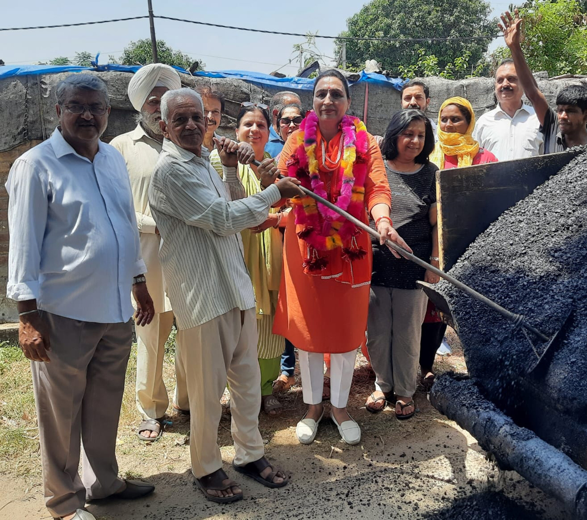 JAMMU, May 7: BJP leader and Councillor of Ward 69 of Sainik Colony, Gurmeet Kour Randhawa today kick started the blacktopping of road in Sector A of Sainik Colony.