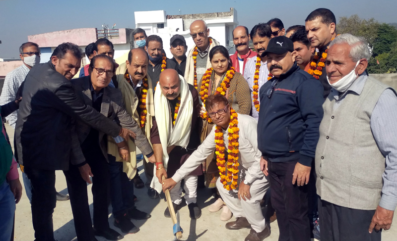 JAMMU, Nov 22: Councillor of Jammu Municipal Corporation (JMC), Anil Kumar Masoom here today started the construction work of community hall at Sain Samaj Sabha in Ward 10 which will incur an expenditure of Rs. 17.84 lakh.