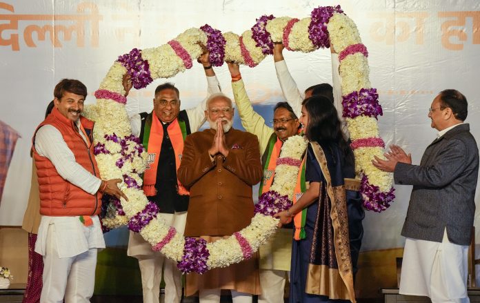 He said Delhiites are celebrating BJP’s victory and respite from ‘AAP-da’, a term he used throughout the campaign to criticise the Aam Aadmi Party’s rule.