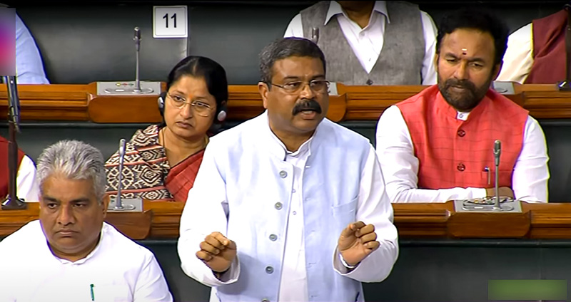 Education Minister Dharmendra Pradhan speaking in Lok Sabha during the Budget Session of Parliament in New Delhi on Monday. (Sansad TV) (UNI)