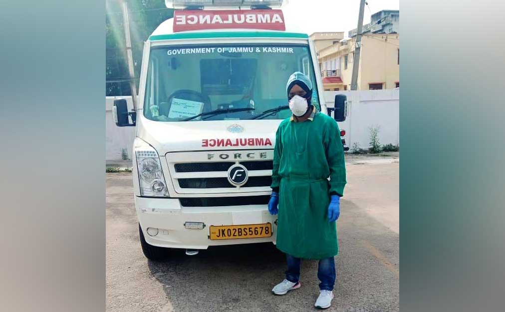 SAMBA: An Ambulance driver from district Samba, who ferries COVID-19 patients, with a servitude outlook are the unsung Covid warriors of our Country. He ferries the Covid infected patients across North India including Delhi, Amritsar, GMC Jammu and other places.