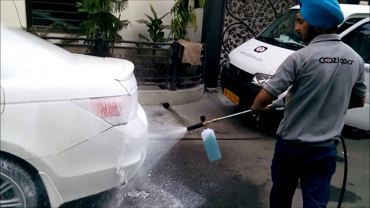 A car being washed by Water Smart Technology at Cozi Cars' franchisee located at Channi Himmat in Jammu.