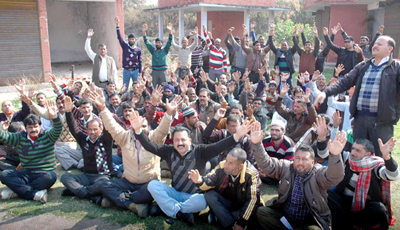 Later, a deputation of the CP Workers/ DRW Association met the Chief Engineer PHE and apprised him of their issues. Prominent among others who accompanied included Birbal, Kamlesh Kumar, Manjeet Singh, Ranjeet Singh, Subash Chander, Ram Pal, Mushtaq Ahmed, Parvez Latief, Salim, Ravan Khajuria and Raj Kumar.