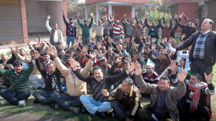CP workers of PHE staging protest in Jammu on Monday.     -Excelsior/Rakesh