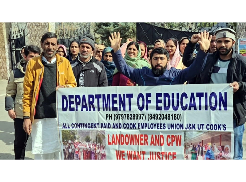 RAMBAN, Feb 8: Scores of contingent paid workers (CPWs), land donors and cook cum helpers working with Education Department Ramban here today staged a protest demonstration under the banner of All Jammu and Kashmir Contingent Paid Workers & Cooks Education Employees Union.