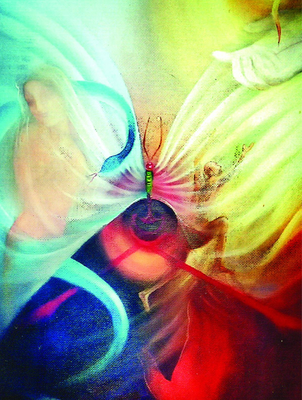 He says that whenever he touches colours and brushes he gets into some heavenly world and says that he is working on some painting which appears a living one with movements and interactive postures.