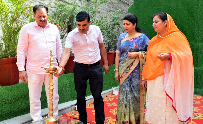 SDM North, Udham Dass Sharma lighting the lamp during a function at Crescent Public School Janipur on Thursday.