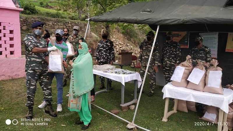 CRPF personnel distributing ration among needy people in Chenani on Tuesday. -Excelsior/Photo By Daily Excelsior - April 8, 2020 Share FacebookTwitterWhatsAppPinterestLinkedinCopy URLTelegramEmailTumblrReddItPrintKoo CRPF personnel distributing ration among needy people in Chenani on Tuesday. -Excelsior/Photo Follow our WhatsApp channel