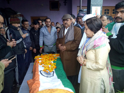 He was given a tearful farewell by the people of the area as well as his relatives and friends. Baring the heavy down pour a large number of people including Minister of Industries and Commerce, Chander Parkash Ganga, DC Samba, Sheetal Nanda, in charge SP Samba, Raja Adel Hamid besides CRPF officers and jawans, civil and police officers participated in his funeral procession. They gave him a touching adieu.