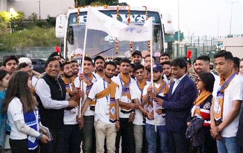 Chief Secretary Arun Kumar Mehta flagging off a group Yuva Sangam Contingent for Assam at IIT Jammu on Friday.