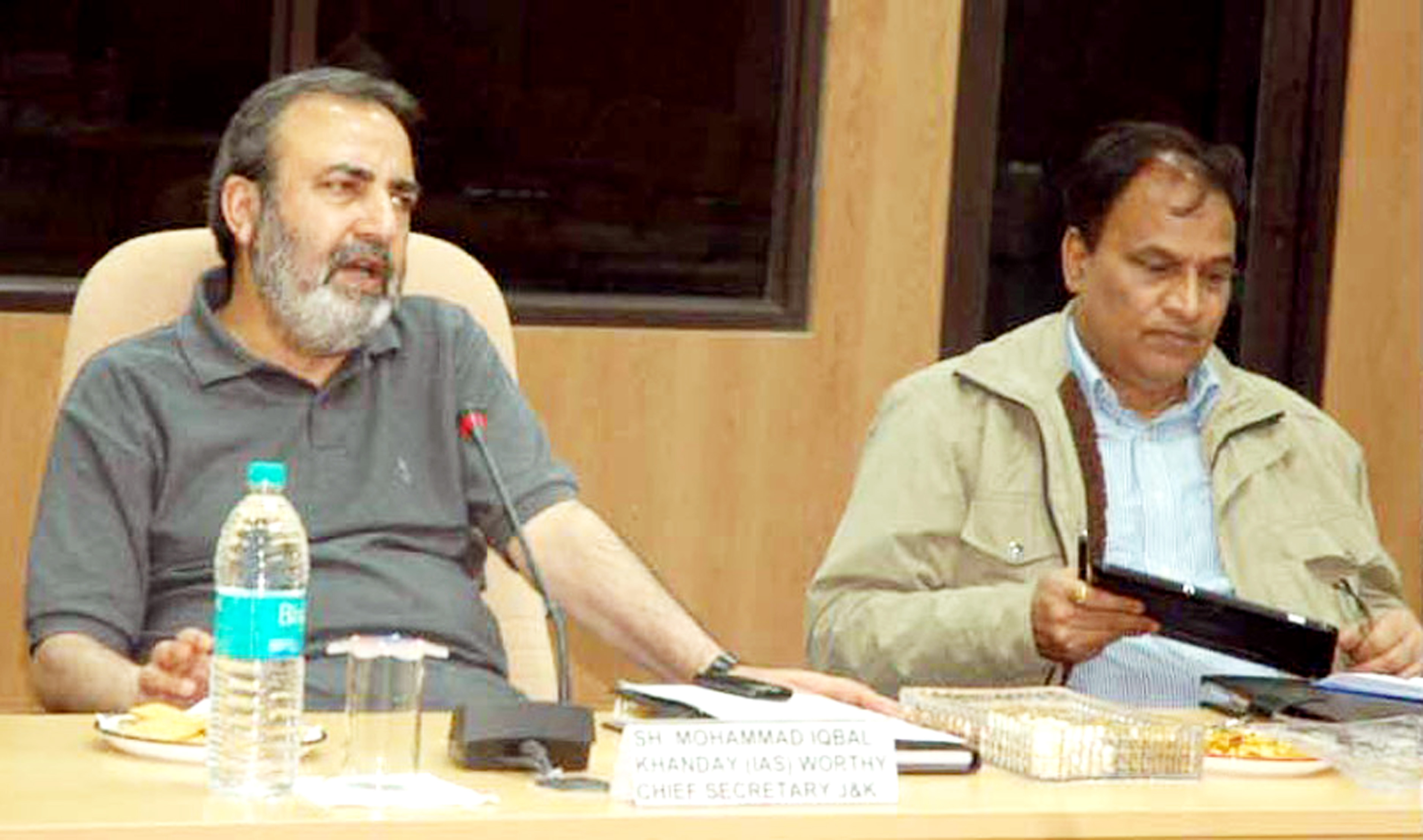 KISHTWAR, Apr 27: Chief Secretary Mohd Iqbal Khanday alongwith Divisional Commissioner Jammu, Pradeep Gupta, Director Health Services and other officers chaired the meeting of all the District and Sectoral Officers of Kishtwar district, here today.