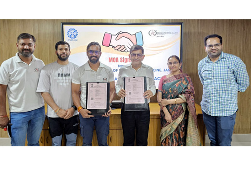 JAMMU, June 15: CSIR-Indian Institute of Integrative Medicine (CSIR-IIIM), Jammu, and Aromatic & Allied Chemicals, Bareilly, have entered into a Memorandum of Agreement (MoA) to collaborate on the value addition of selected aromatic crops of the region of UT of Jammu & Kashmir and the joint development of innovative aromatic products.