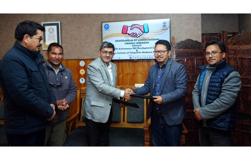 LEH, Nov 12: To promote medicinal, aromatic and flowering plants cultivation in Ladakh, the CSIR-Indian Institute of Integrative Medicine (CSIR-IIIM), the Council of Scientific and Industrial Research (CSIR) signed a Memorandum of Understanding (MoU) with the Ladakh Autonomous Hill Development Council (LAHDC) to set up a demonstration Farm for MAPs cultivation at Palam in Leh.