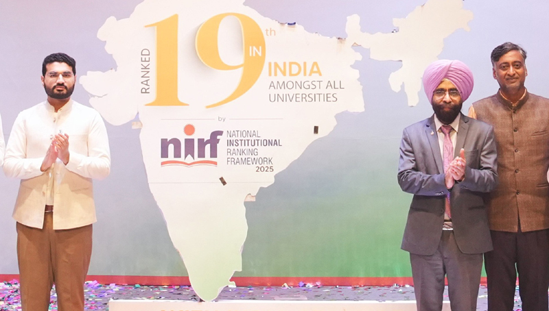 JAMMU, Sept 4: Chandigarh University (CU) achieved yet another milestone by securing the 19th rank among all Government and private universities in India in the 10th edition of the National Institutional Ranking Framework (NIRF) 2025, released by the Union Ministry of Education today.