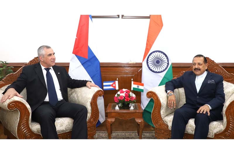Cuba Deputy Prime Minister Eduardo Martínez Díaz, as head of a high level official delegation, calling on Union Minister Dr. Jitendra Singh at North Block, New Delhi on Monday.