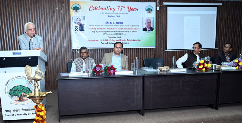 Prof Sanjeev Jain, Vice Chancellor of Central University of Jammu, delivered the presidential address, highlighting the enduring significance of the Constitution in shaping India’s democratic framework. He emphasized the importance of fundamental duties alongside fundamental rights and stressed the role of the Constitution in promoting women’s empowerment.