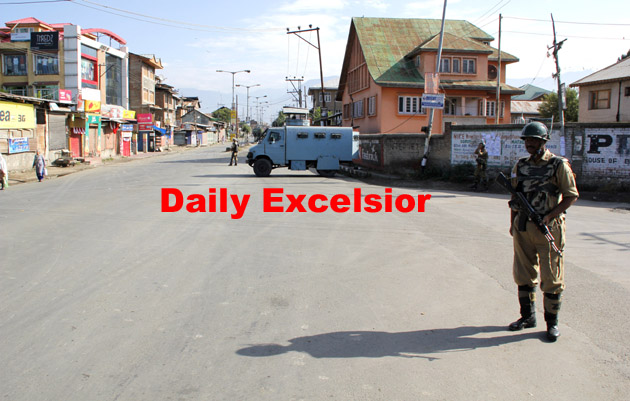 Curfew imposed in old city of Srinagar,Pulwama,Anantnag after killing of top Hizbul Mujahideen commander.Excelsior\Shakeel-ul-Rehman
