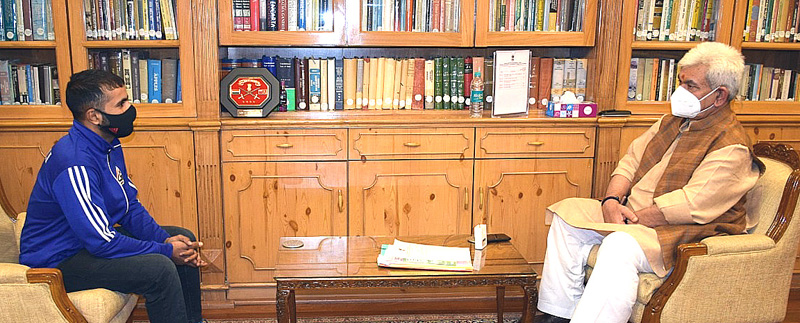 SRINAGAR, Apr 4: Professional Cyclist, Adil Teli, from Narbal Budgam, today called on Lieutenant Governor, Manoj Sinha, here at the Raj Bhavan.
