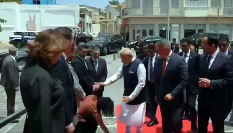 NICOSIA, Jun 16: In a gesture of respect, a Cyprus lawmaker on Monday touched Prime Minister Narendra Modi’s feet when he arrived at the historic Centre of Nicosia along with President Nikos Christodoulides.