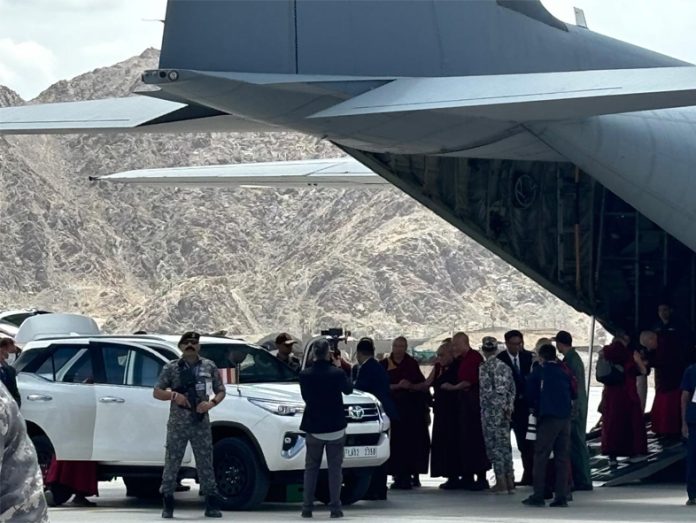 The Dalai Lama reached Leh Technical Airport from Himachal Pradesh’s Dharamshala and was received by a group of prominent persons and leaders cutting across their political affiliations.
