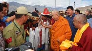 Dalai Lama interacting with students during visit to Jamyang School on Tuesday.