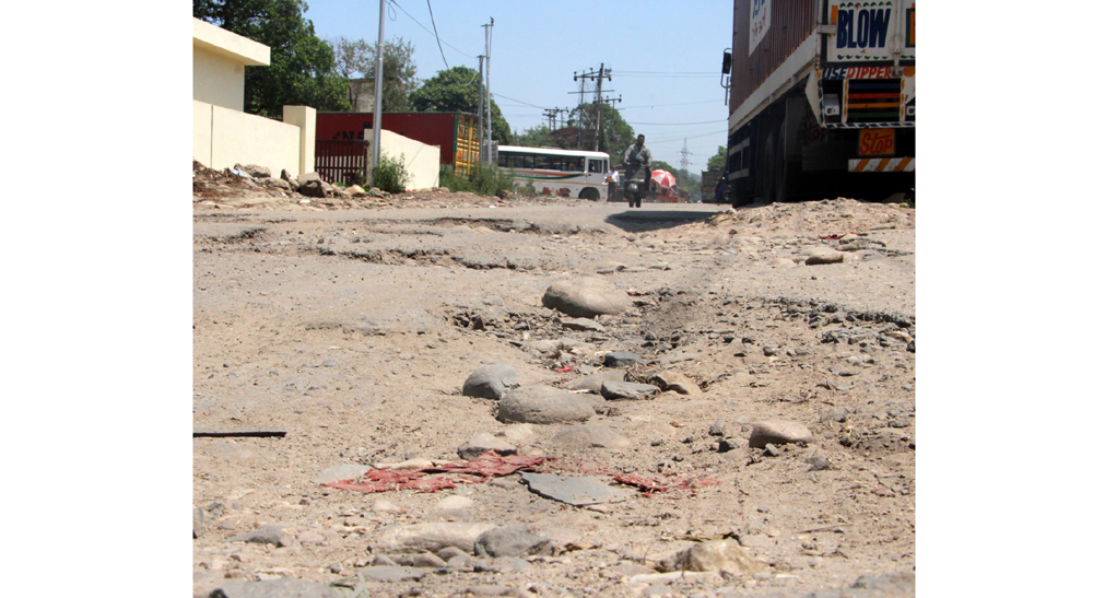 Damaged road near RTO office in Narwal area of Jammu. – Excelsior/Rakesh By Daily Excelsior - May 30, 2022 Share FacebookTwitterWhatsAppPinterestLinkedinCopy URLTelegramEmailTumblrReddItPrintKoo Damaged road near RTO office in Narwal area of Jammu. - Excelsior/Rakesh Damaged road near RTO office in Narwal area of Jammu. – Excelsior/Rakesh Follow our WhatsApp channel