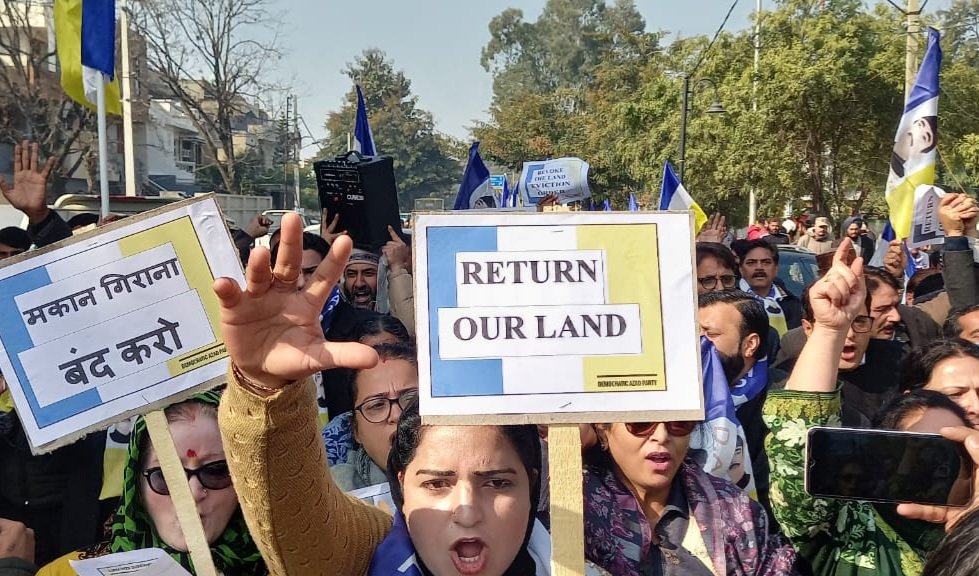 JAMMU, Jan 15: The Democratic Azad Party leaders and workers on Monday organised a protest against the land eviction order by the J&K UT government here.
