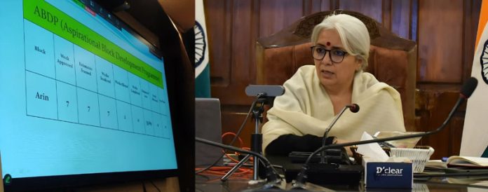 BANDIPORA, Oct 6: Deputy Commissioner (DC) Bandipora, Indu Kanwal Chib, on Monday chaired a comprehensive review meeting of the Rural Development Department (RDD) to assess the progress and performance of various schemes being implemented across the district, including all three subdivisions- Bandipora, Sumbal, and Gurez.