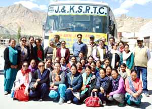 Leh, Sept 13: Deputy Commissioner, Leh Parsana Ramaswamy G flag off a team of Anganwari Workers, ASHAS and ANMs to Ahmednagar Maharashtra for training course from DC office, Leh today.