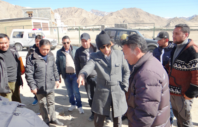 LEH, Feb 18: The Deputy Commissioner, Leh Prasana Ramaswami G, in view of the approaching working season inspected Skara Yokma, Murtsey Colony and Nemoling area along with team of engineers headed by SE PWD Tashi Chombel and CPO, Leh Tsering Angchuk. He took on spot assessment of ongoing and completed works under Urban Infrastructure Developm-ent Scheme for Small and Medium Town (UIDSSMT), Integrated Housing and Slum Development Programme (IHSDP).