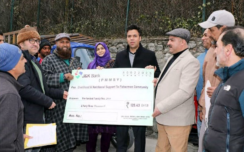 SRINAGAR, Feb 10: Deputy Commissioner (DC) Srinagar, Dr Bilal Mohi-Ud-Din Bhat along with Director Fisheries, A. M. Tak distributed financial assistance among the fishermen community for various activities under the Pradhan Mantri Matsya Sampada Yojana (PMMSY) during the fiscal year 2024-25 here today in a programme held at Fisheries Aquarium Gagribal, Nehru Park.