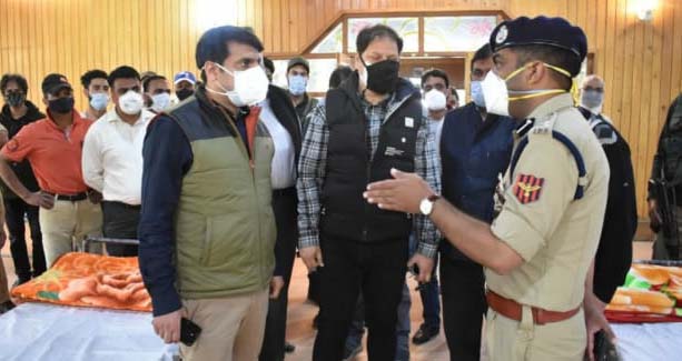 The Deputy Commissioner accompanied by SSP Srinagar, Mr. Sandeep Chowdhary, Commissioner, SMC, Mr. Amir Athar, Additional Deputy Commissioner, Syed Hanief Balkhi, CMO Srinagar and other senior officers visited Covid Care Centers set up at Indoor Stadium, Maternity Hospital Sanat Nagar, Marriage Hall Sanat Nagar and Haj House Bemina and took stock of the arrangements made for suspected Covid-19 patients.