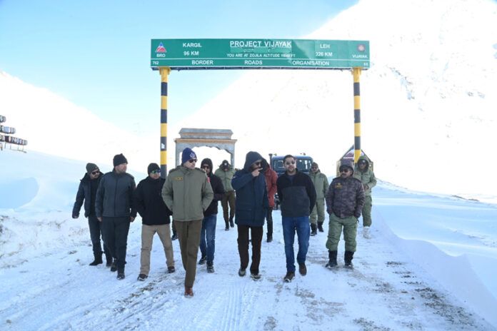 KARGIL, Jan 24 : Deputy Commissioner and Chief Executive Officer of the Ladakh Autonomous Hill Development Council (LAHDC), Kargil, Rakesh Kumar, today visited Zojila Pass to review the condition of the Kargil–Srinagar National Highway following recent snowfall in the region.