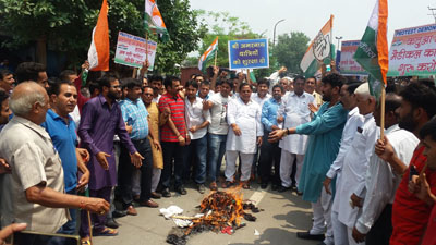 Hundreds of Congress activists carried out protest rally from town, which ended at SDM Office. During this, the protestors raising slogans against Pakistan, Prime Minister, Nawaz Sharief also set ablaze the effigy of him.